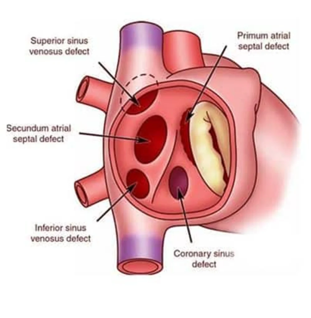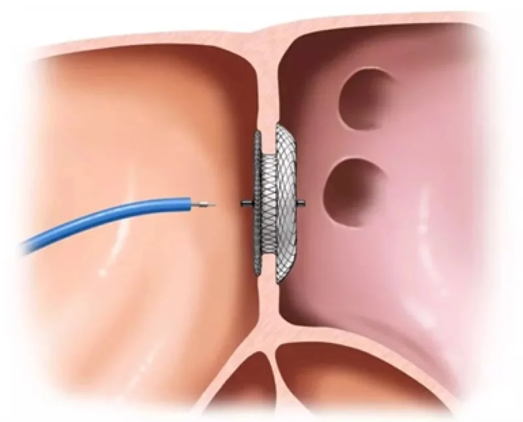 Resumo em 1 minuto: é um orifício persistente entre os átrios (direito e esquerdo) que permite passagem de sangue de esquerda→direita, sobrecarregando o lado direito do coração e os pulmões. Muitas pessoas não têm sintomas por anos. Quando há dilatação do coração direito, arritmias ou falta de ar aos esforços, indica-se fechamento — geralmente por cateter (dispositivo “oclusor”) nos tipos favoráveis; em outros, por cirurgia. Após o fechamento, a maioria leva vida normal.
