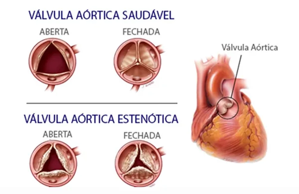 A estenose aórtica é o estreitamento da válvula aórtica, que controla a saída do sangue do coração para o corpo. Com a válvula “dura” ou calcificada, o coração precisa fazer mais força para bombear. Em adultos, a causa mais comum é o desgaste com calcificação ao longo dos anos; em pessoas mais jovens, pode haver válvula bicúspide (nascida com duas “portas” em vez de três).
